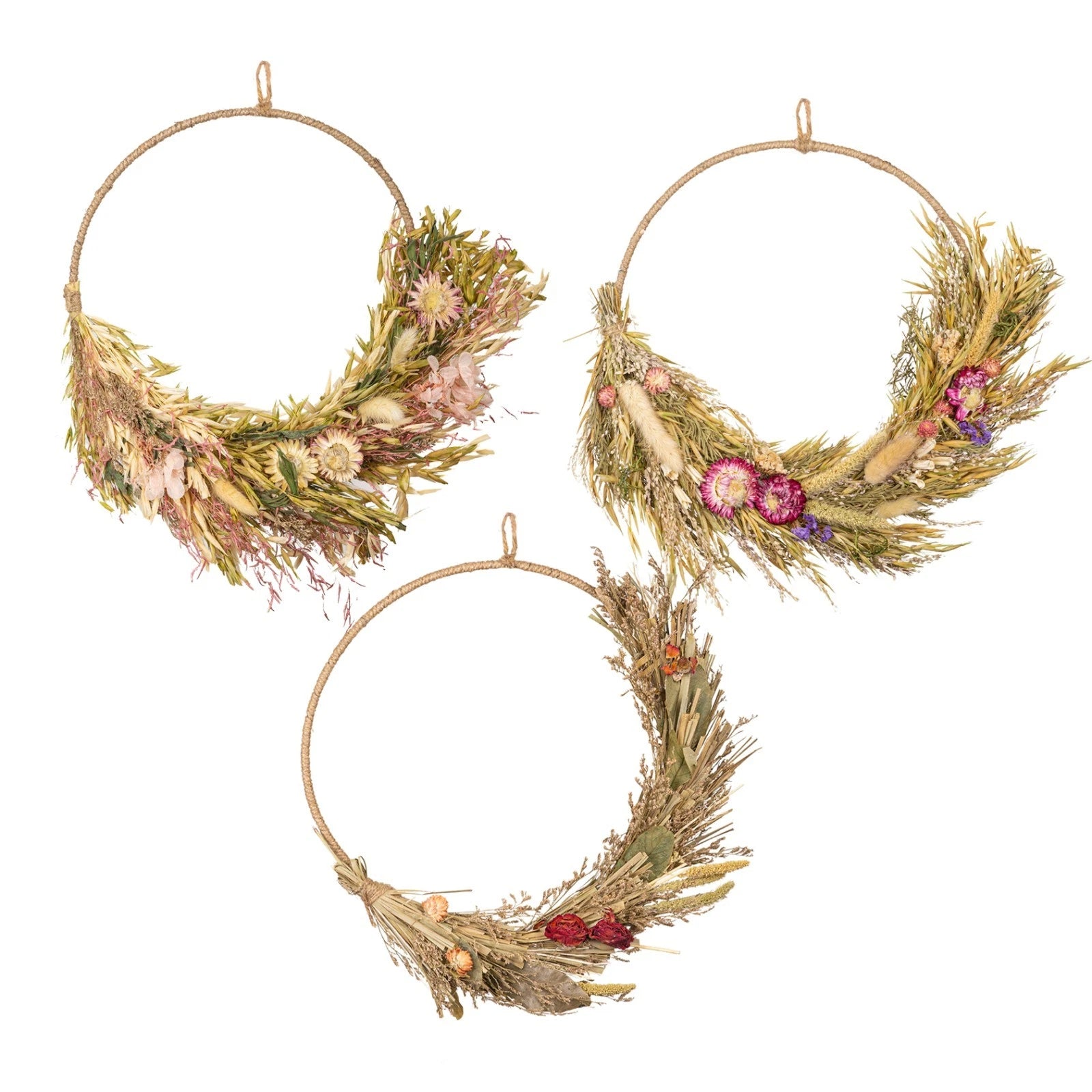 Set of 3 Artificial Dried Natural Flower Wreaths