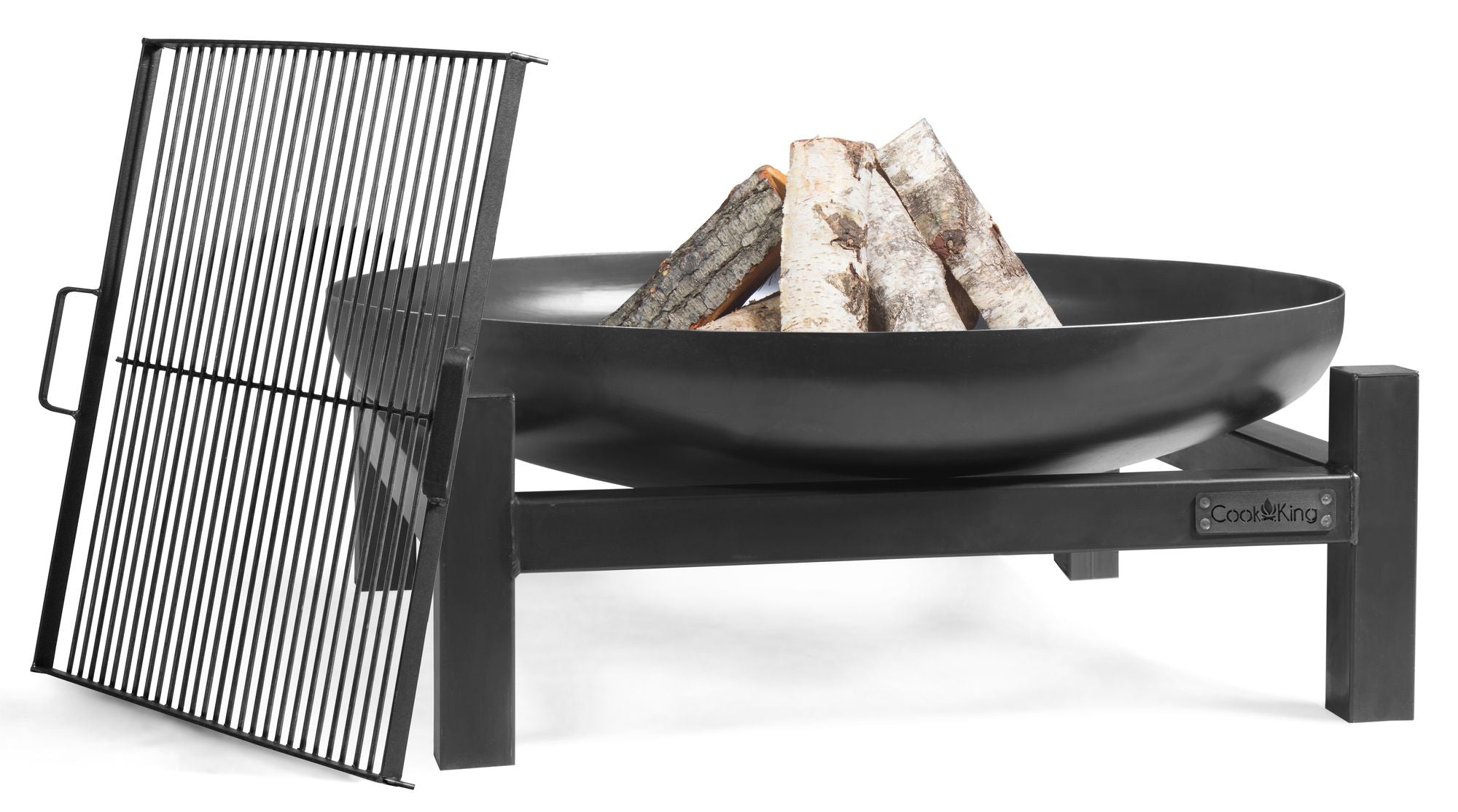 - Concave shape prevents wood burnt inside from being blown around