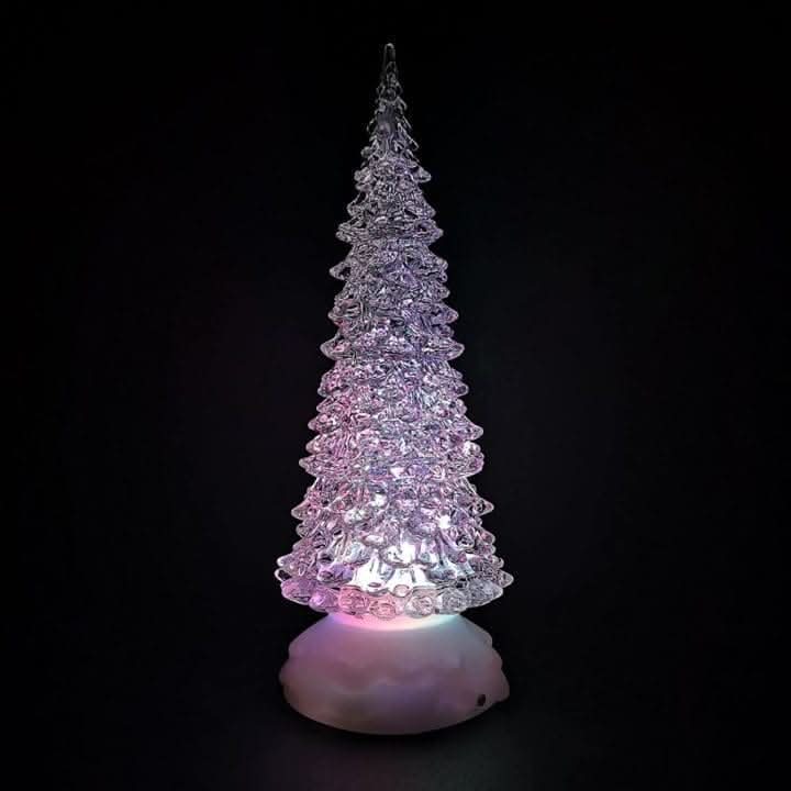 Colour Changing Light - This beautiful water filled tree is illuminated by LED lights that change colour. The lights are battery powered so it can be placed almost anywhere in your home. The Christmas tree is made from clear acrylic, so you can clearly see the combination of water and glitter swirling around inside it. The colour changing LED glows green, purple, red, and blue. When the glitter water catches the light from the LED, it twinkles and sparkles to create a beautiful light display.