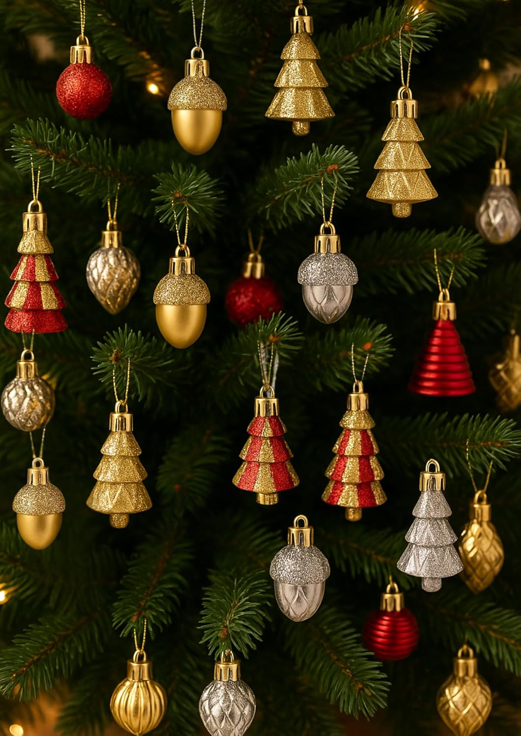 Set of 25 mini Christmas baubles in assorted shapes and finishes, each measuring 3-5cm. Made from durable, lightweight plastic with glitter and shiny finishes for a premium look without breakage risk. Perfect for decorating small Christmas trees, wreaths, garlands, and festive displays. Sturdy hanging loops keep ornaments securely in place year after year.
