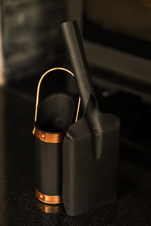 Fireside Coal Bucket & Match Canister - Black and Bronze