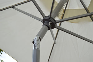 This cream parasol is the perfect addition to your garden for those warm summer days, providing shade and coverage to any area of your outdoor space. The sleek and modern design of this cream parasol with grey metal detailing allows it to go great with any garden furniture.