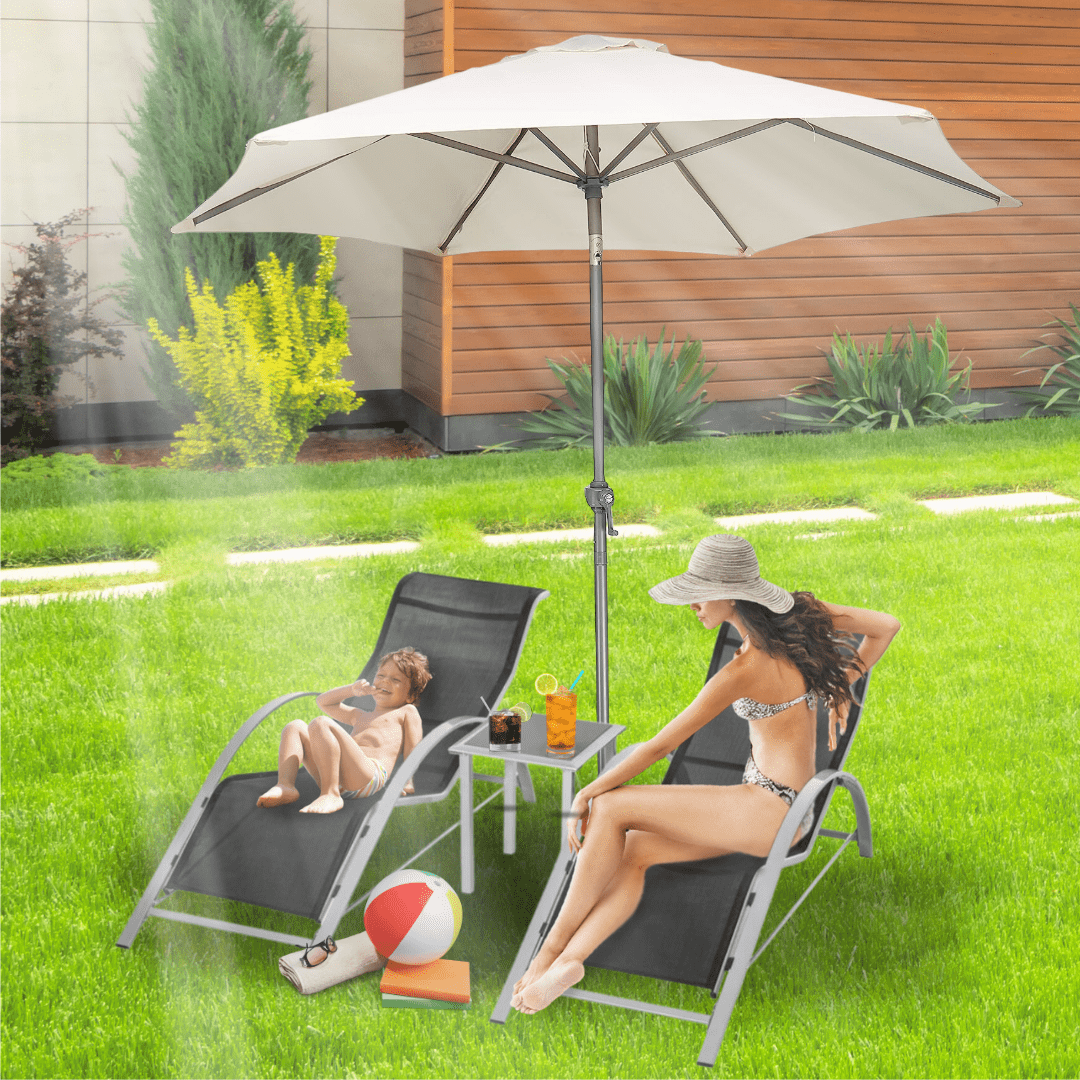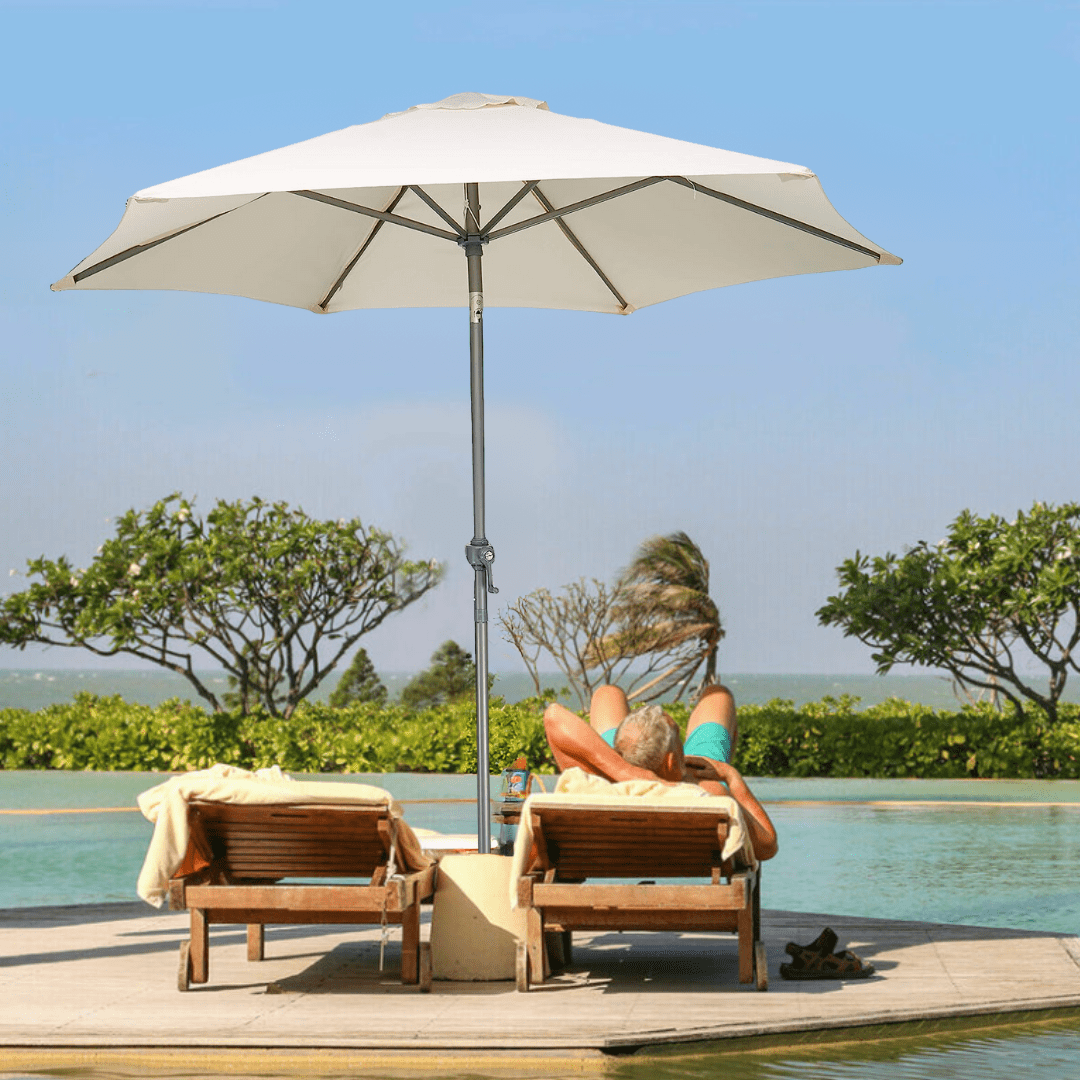 This amazing parasol comes with a crank shaft which allows you to tilt and angle the garden parasol, so no matter where the sun is you can always be in the shade.