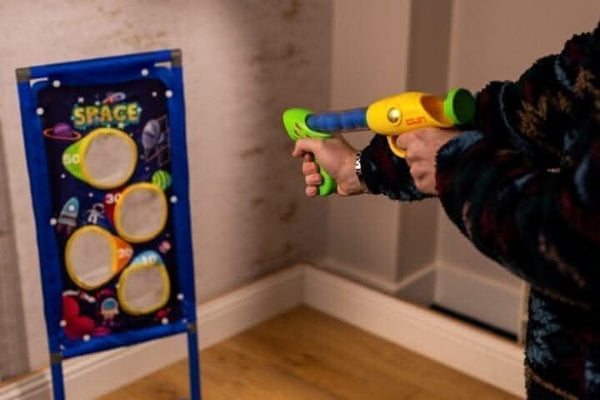 With 2 blasters, you and a friend can enjoy duels, challenge your kids on who gets the highest score or most accurate.