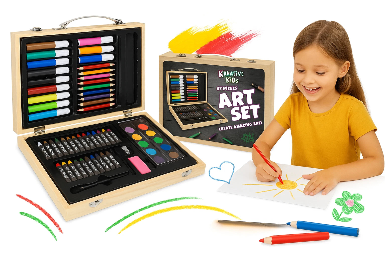 Unleash your little artist’s imagination with this 67-piece Kids Arts and Crafts Set! Packed with 12 vibrant paint colours, crayons, pencils, pens, a sharpener, eraser, and brush, it has everything your child needs to get creative. Perfectly designed to keep art supplies organised and tidy, this set makes a wonderful gift for children exploring their artistic side for the first time. Let the fun and creativity begin in one handy kit!