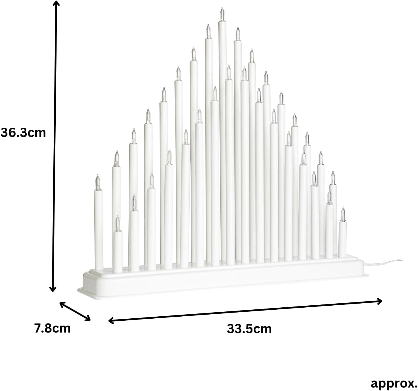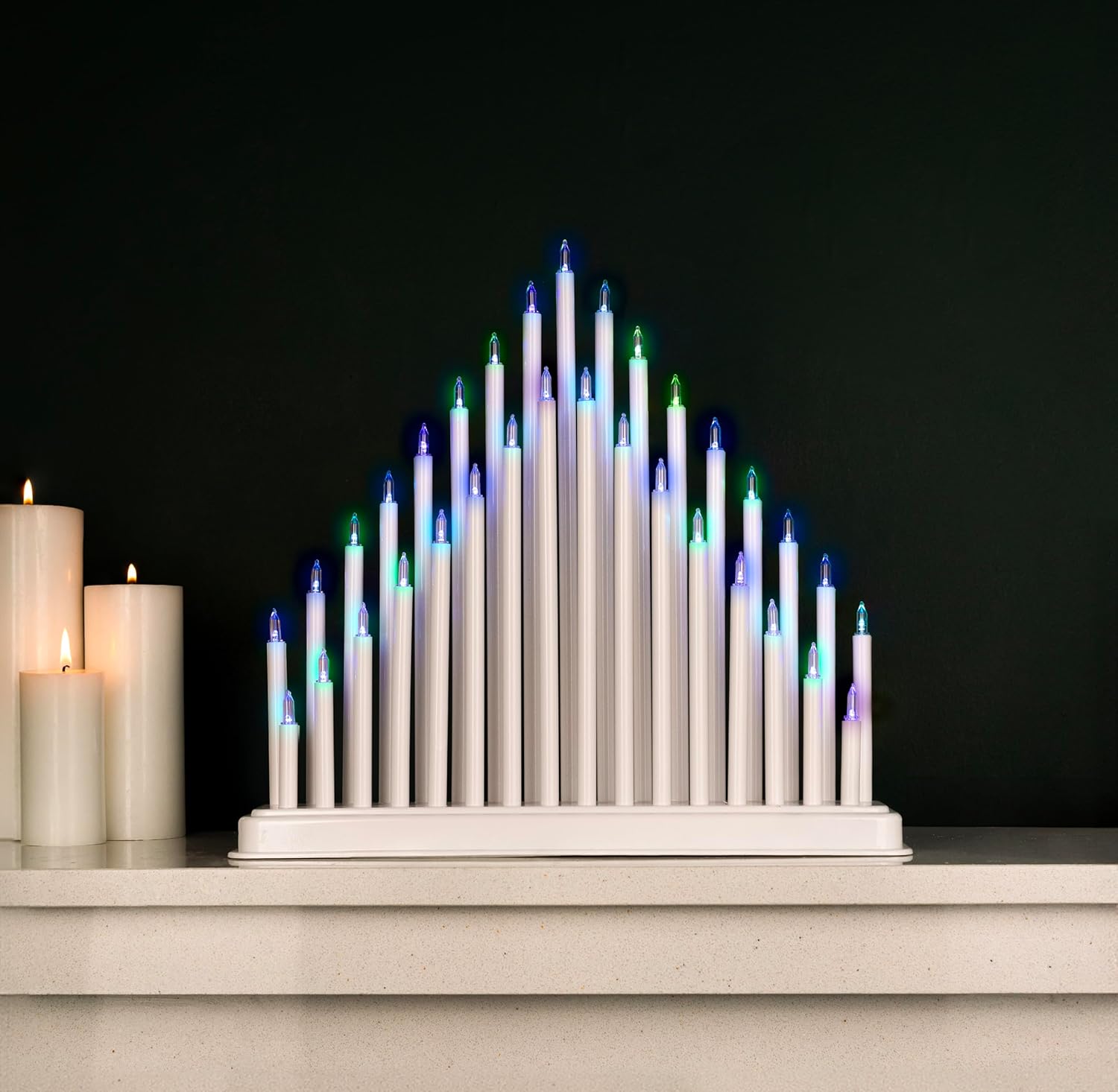 Place our candle bridge on a windowsill, shelf, table, or use it as a dining centerpiece, the stylish but sleek design blends effortlessly with any home decor style! Featuring 33 vibrant multi-coloured lights, this candle bridge will definitely grab the attention of your guests and your neighbourghs' passing your home! This candle bridge brings a contemporary twist to a beloved classic, sure to impress your guests and fill your home with festive joy!