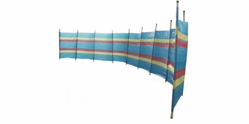 1.5 metre tall, multicoloured 10 pole windbreak.