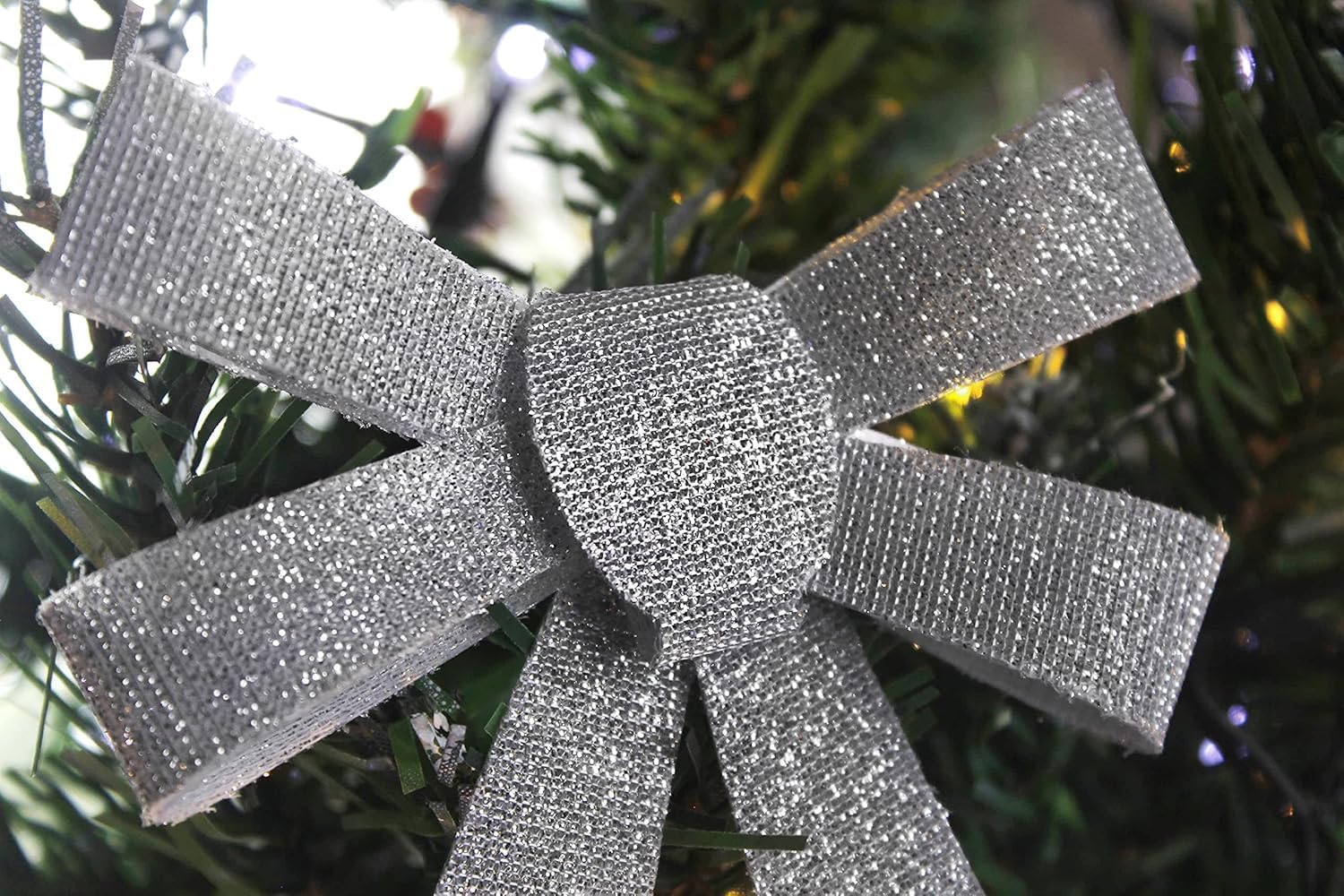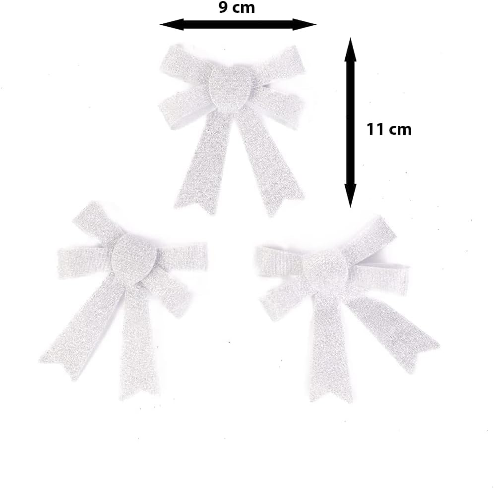 3pc Christmas Silver Glitter Bow Set
