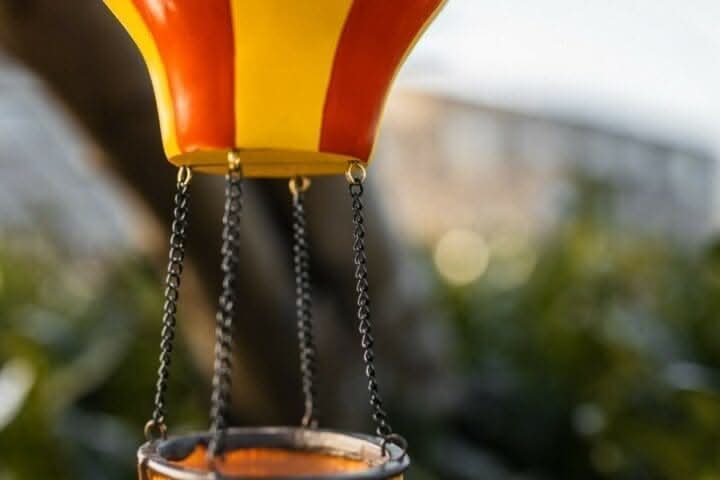 With its unique red & yellow striping on the balloon & charming basket for birds to feed from, this practical piece is truly one-of-a-kind. Bright and fun, it will brighten any garden