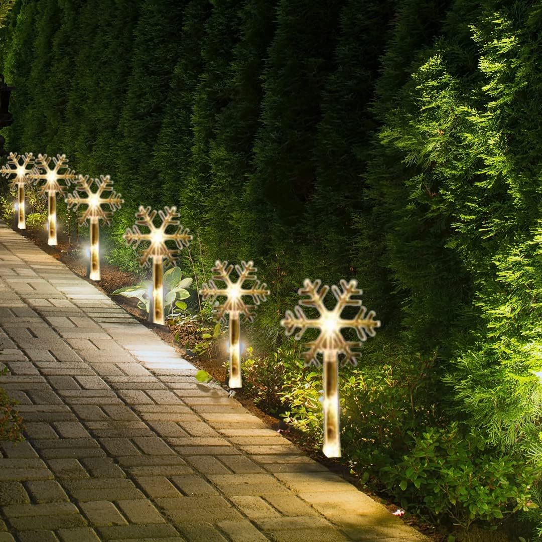 Brighten up your garden or walkway with these charming snowflake stake lights! Simply pop them into soft soil along paths, patios, or flower beds to add a festive glow. This set of 8 dazzling snowflakes brings Christmas cheer right to your doorstep, turning lawns and borders into winter wonderlands. Large and colorful, they’re perfect for lighting the way or making your garden sparkle with holiday spirit. Built to last through many seasons of festive fun, these delightful decorations will keep your outdoor space merry and bright year after year!