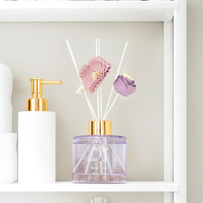 Bring a refreshing aroma to your living space with our Floral Diffuser in Lavender and Chamomile. This elegant diffuser delivers a light, crisp fragrance that rejuvenates any room. Designed with three wooden flower accents, it not only disperses fragrance but also enhances your decor, making it perfect for daily use throughout your home.