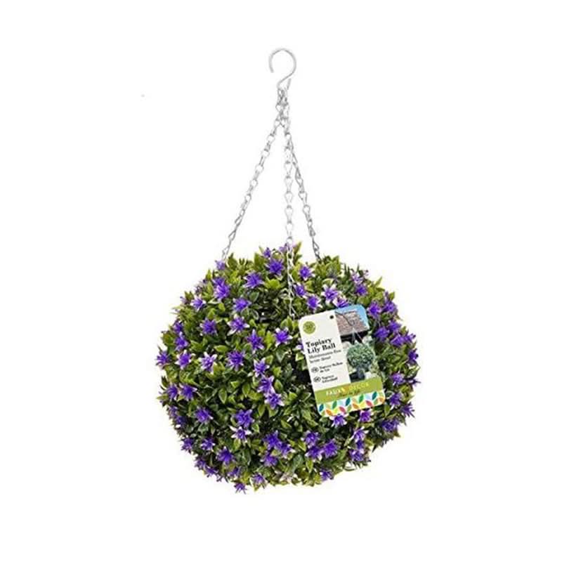 Enhance your garden with our unique collection of topiary balls. Choose from hanging baskets in ball form, beautifully filled with artificial flowers like red roses, vivid violets, white and pink roses, lavender, and lilies. These vibrant faux flowers add charm and colour to any area. For something different explore our faux potted trees, perfect for creating a lush, low-maintenance garden. Shop now for elegant topiary products from Marco Paul.