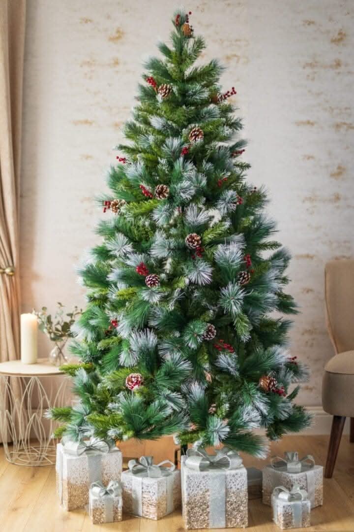 Premium Frosted Christmas Tree with Pine Cones and Berries 6ft