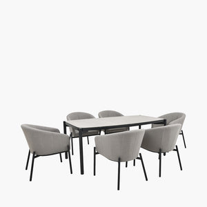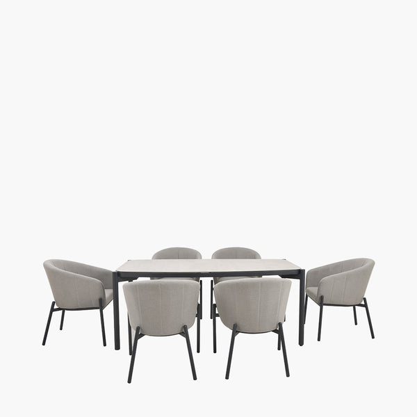 Elevate your outdoor space with the contemporary Nevada Outdoor Dining Set, perfect for al fresco dining. This set includes 6 Dining Chairs and 1 Dining Table, all thoughtfully designed for both style and durability. The outdoor chairs feature Putty coloured Acrylic fabric, renowned for its UV resistance, able to withstand up to 1,000 hours of direct sunlight while maintaining a high-quality finish. The outdoor table and dining chairs are crafted with a sleek, powder-coated aluminium frame finished in Black, All these materials, are highly durable as well as stylish making the Nevada Outdoor Dining Set a must-have for any outdoor setting. We suggest using a Aerocover to protect your set while not in use to maintain its quality, and the fresh out of the box look. This product has the benefit of a 3 Year Structural Guarantee*