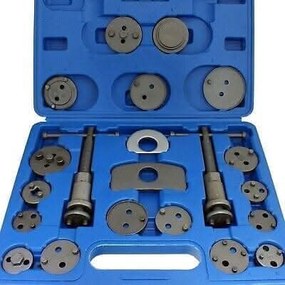 Adapter plates with thrust bolt assembly and reaction plate prevents damage to piston seals. Assorted Adaptors Included. Suitable For Push Back And Wind Back Brake Pistons.