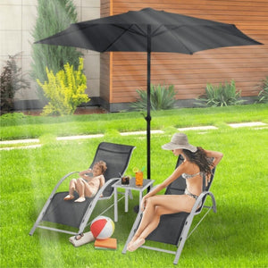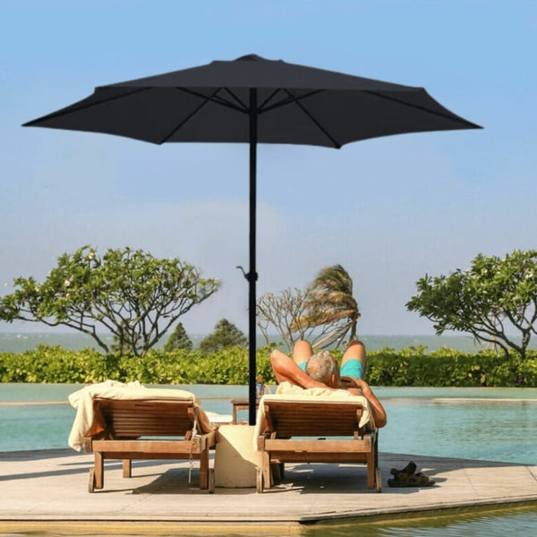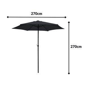 2.7m Diameter Wind Up Garden Parasol Sun Shade in Black
