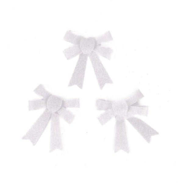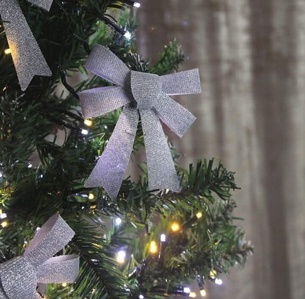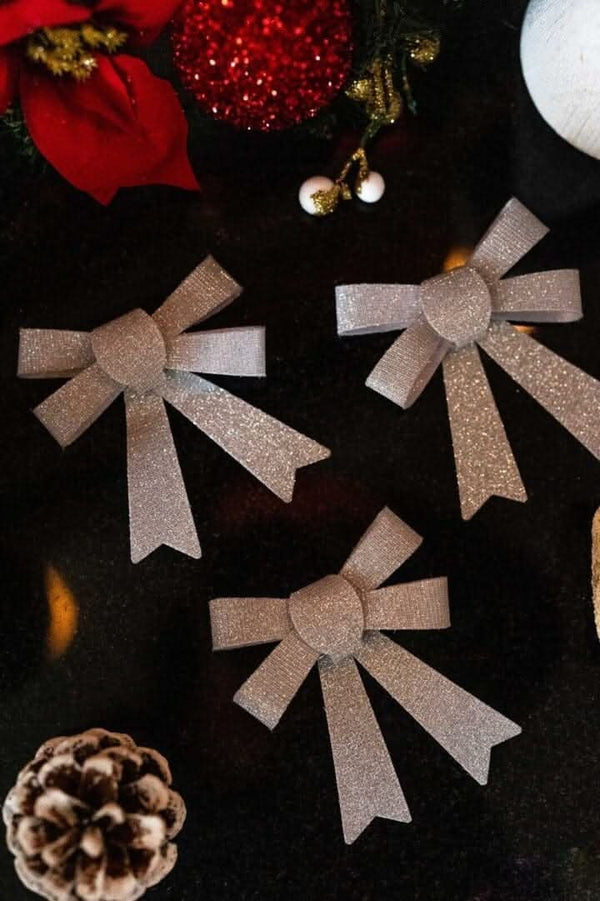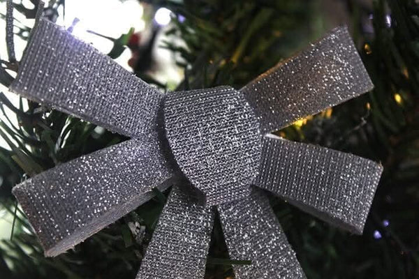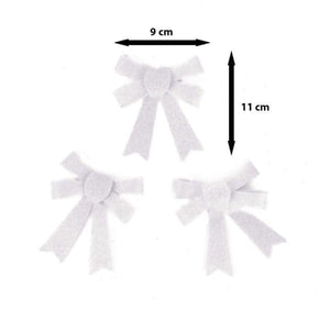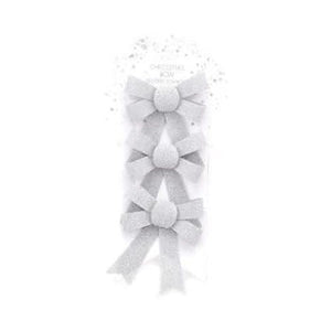 This set of three Christmas bow decorations that have a silver glitter shine to them! Bows are a fun, eye-catching, inexpensive and effective way to bring some Christmas magic into your home this Winter! Crafted with care from hardwearing plastic, these bows are skilfully shaped and coated in eye-catching silver glitter, making them suitable for use within any style of household décor or decorating scheme! Perfect for accentuating personalised gifts and even for creating charming decorations, this Set of 3 bows is sure to stand out.