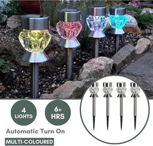 4x Solar Powered LED Stake Lights Diamond Shaped