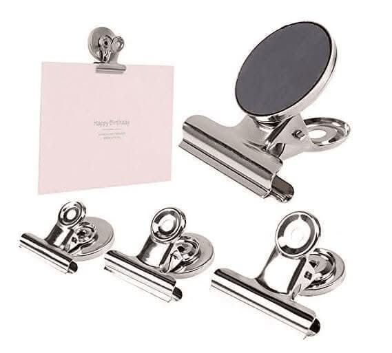 Keep your notes handy with these magnetic bulldog clips. The strong magnet in the base adheres to any magnetic surface allowing the clip to display almost anywhere around the home.
