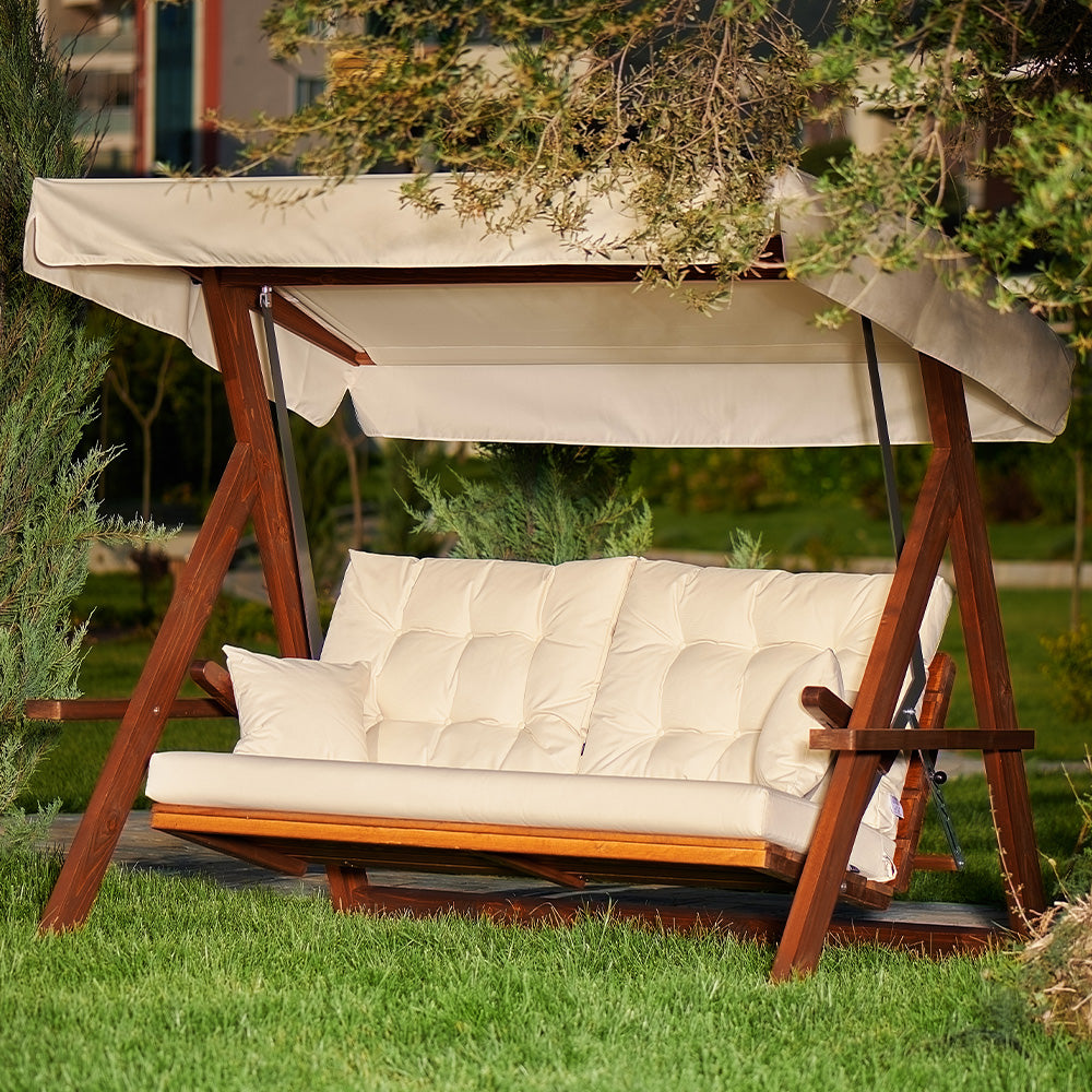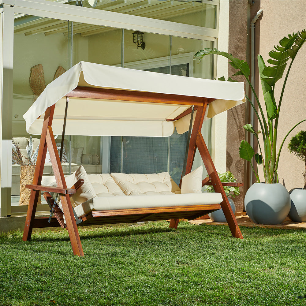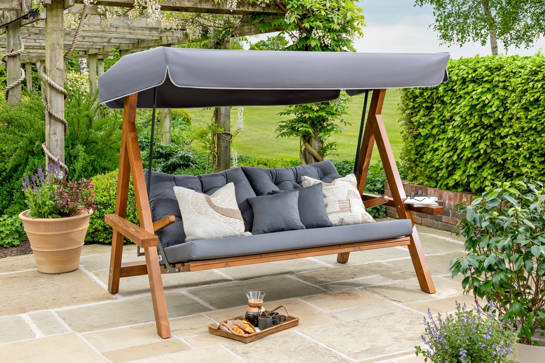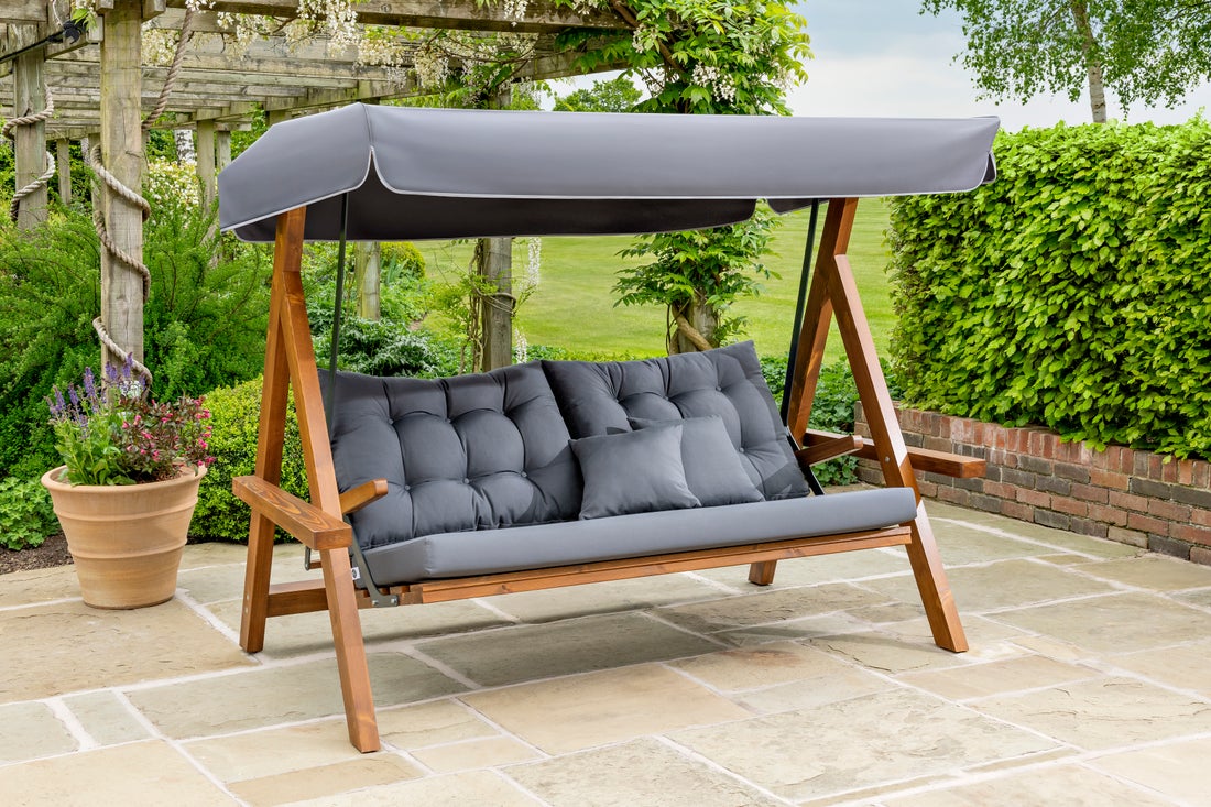 The Appleton 2400 Swing combines comfort, durability, and timeless design. Crafted from high-quality natural Iroko wood, this 3-seater swing offers a rich, warm finish and long-lasting performance. Its sturdy anthracite frame adds a contemporary touch, making it a stylish focal point in any garden or patio. Designed for year-round use, it’s built to withstand the elements while providing a smooth, soothing rocking motion. Whether you're unwinding solo or sharing the moment, this swing brings comfort and charm to your outdoor living space.