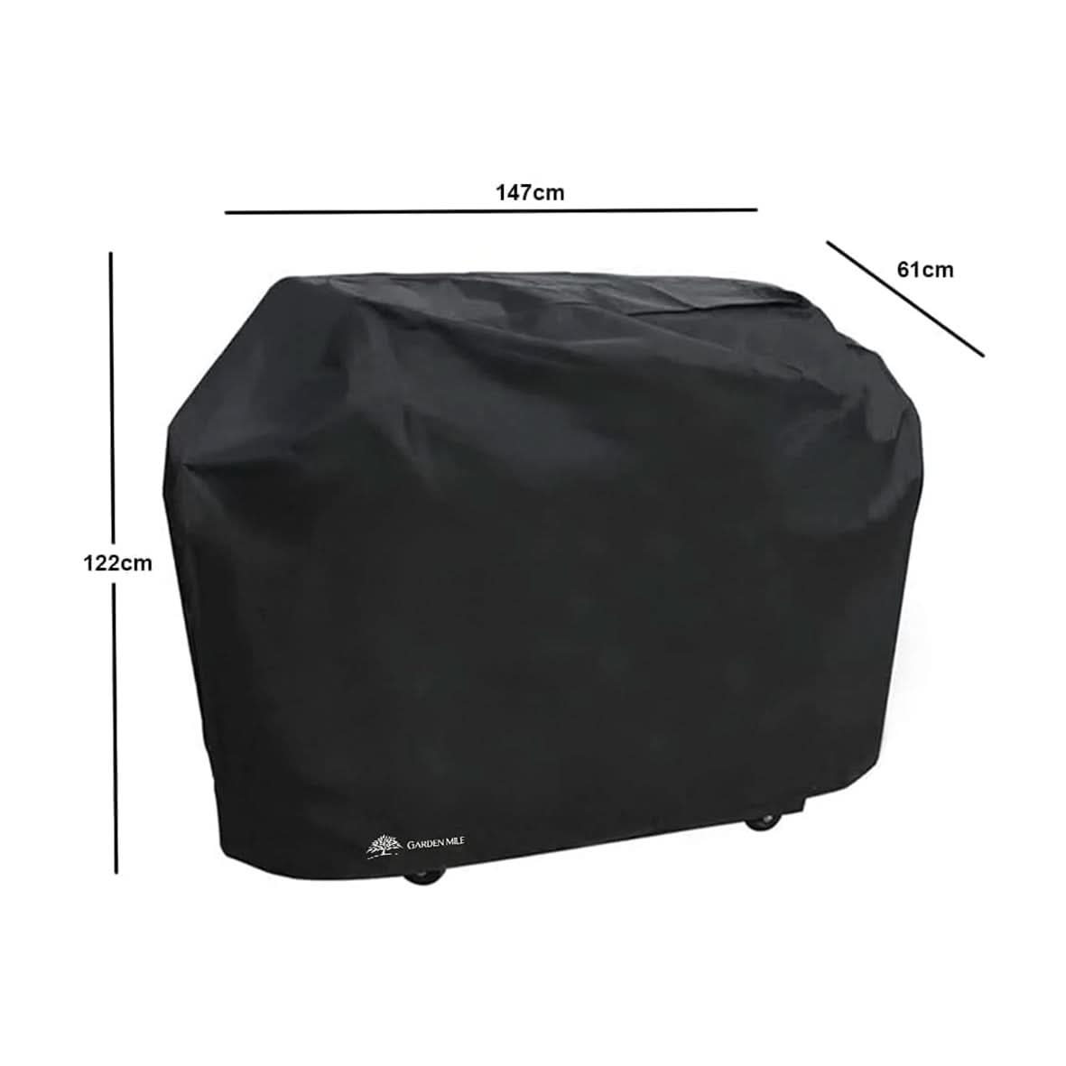 Black, oxford nylon 600D. This furniture cover is suitable for use in covering and protecting a large BBQ and measures in at L163 x W61 x H122cm.