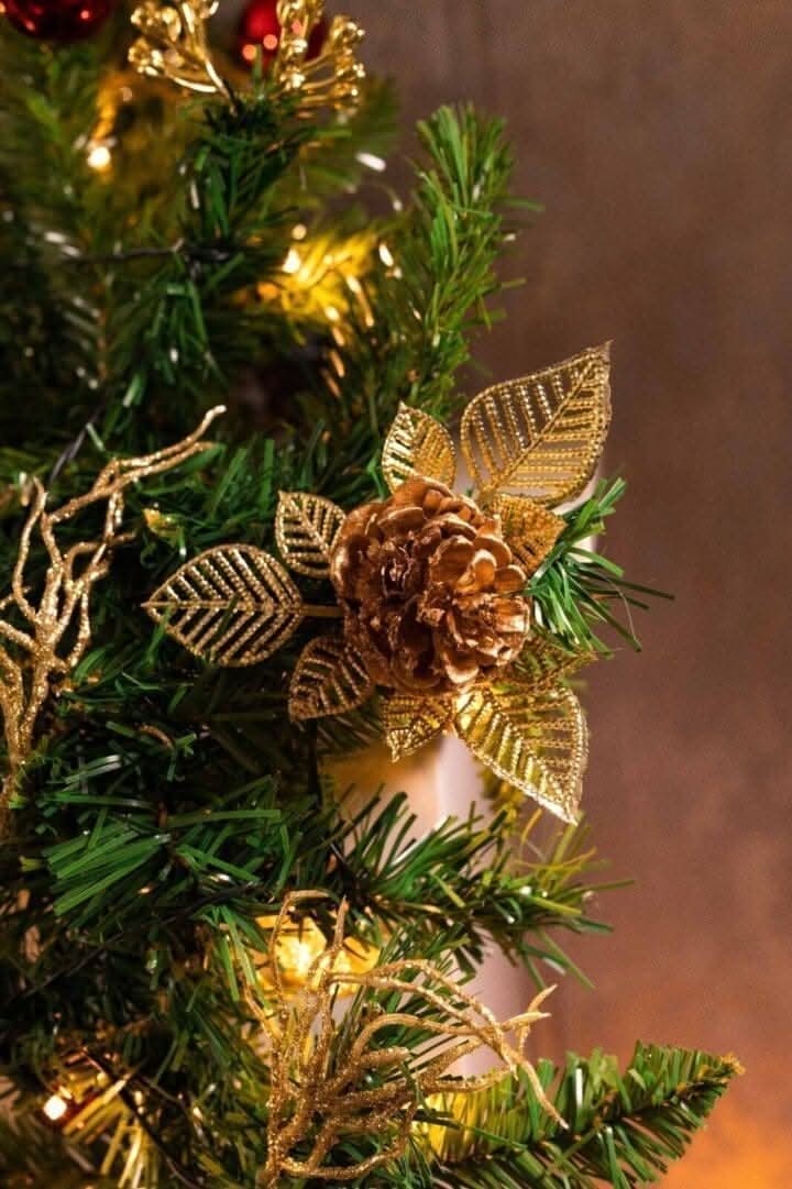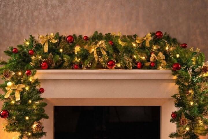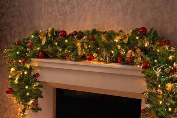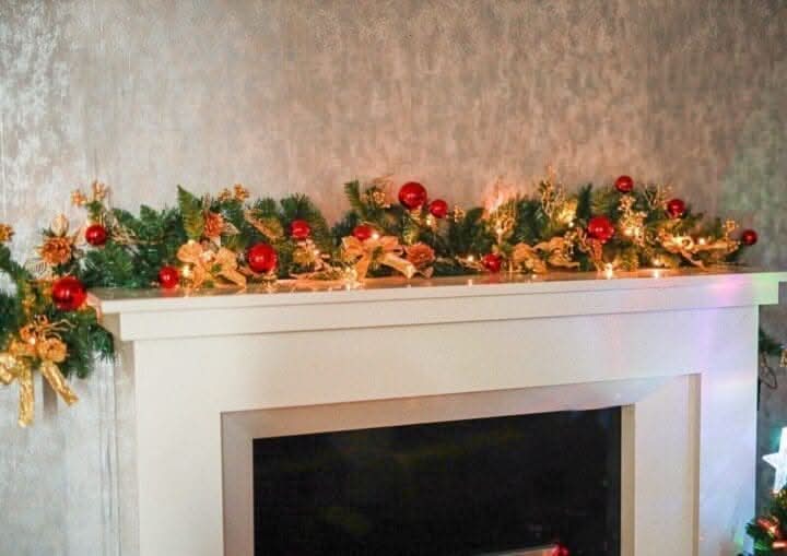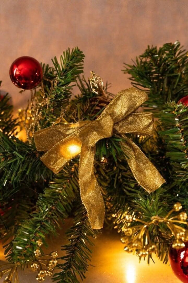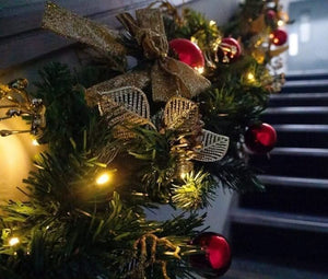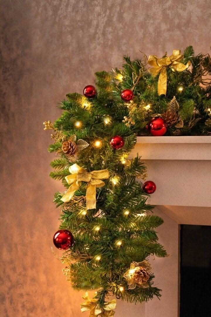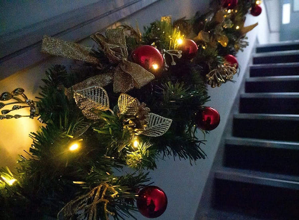 6ft Red & Gold Pre Lit Christmas Garland with Warm White LED Lights