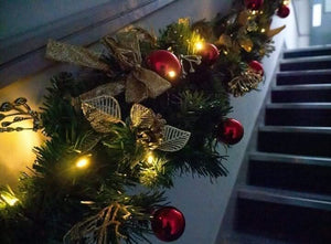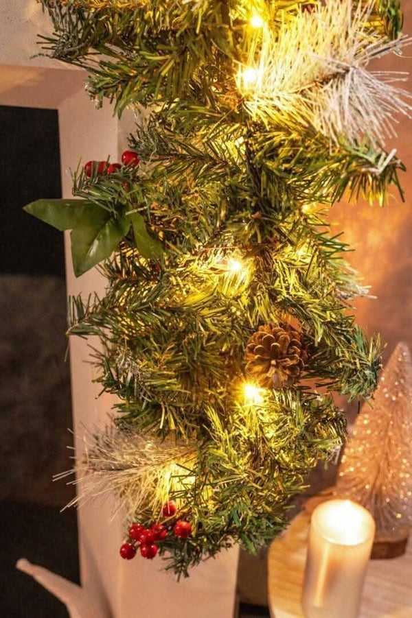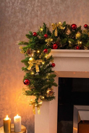 Bring extra sparkle to your holiday decorations with this bright and cheerful Christmas garland, sparkling in classic reds and golds. Packed with charming decorations and twinkling LED lights, it’s the perfect way to brighten your home all season long. Battery powered for easy placement anywhere, no tangled cords needed! Plus, set the timer so it lights up just as you snuggle in for your favourite Christmas movie and a mince pie. This is the festive favourite you’ll reach for year after year!