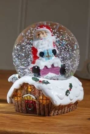Christmas Snow Globe Decoration featuring hand-painted Santa or Snowman designs with warm white LED lights and swirling glitter. Battery-operated with colour-changing effects, this detailed resin ornament brings festive magic to any room. Perfect for windowsills, mantlepieces, or table displays. A charming decoration you'll treasure year after year.