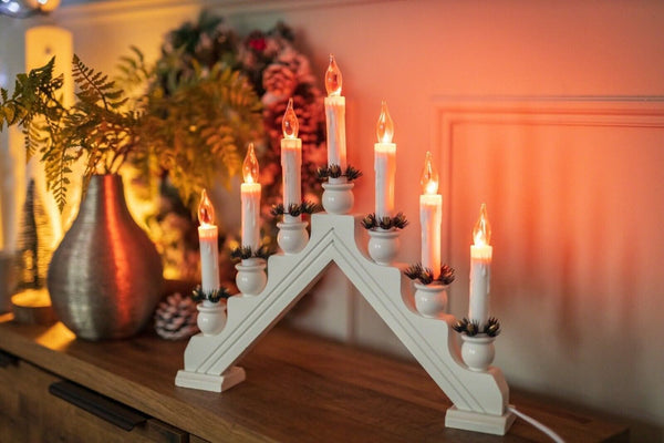 This pre-lit White Wooden LED Candle Bridge is the perfect addition to any home this Christmas.