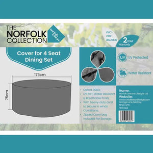 The Cover Ashill 4 Seater Dining - This outdoor furniture cover offers reliable protection with its UV 50+ rating, helping to prevent sun damage and extend the life of your furnishings. Its water-resistant design effectively shields against rain and moisture, keeping furniture dry and well-maintained. Crafted from durable Oxford 300D fabric, it includes a strong rope to secure the cover during windy weather. For added convenience, a zipped carry bag is included, making storage and transport easy while keeping the cover clean and ready for use.