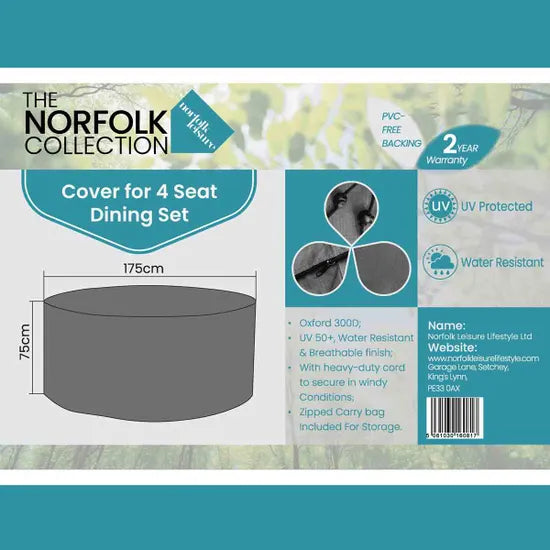 Cover Ashill 4 Seater Dining - D175cm x H75cm