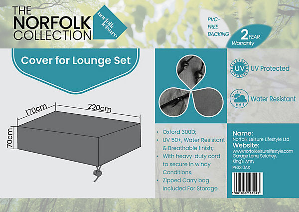 The Cover Hemsby 3 Seater Lounge - This outdoor furniture cover offers reliable protection with its UV 50+ rating, helping to prevent sun damage and extend the life of your furnishings. Its water-resistant design effectively shields against rain and moisture, keeping furniture dry and well-maintained. Crafted from durable Oxford 300D fabric, it includes a strong rope to secure the cover during windy weather. For added convenience, a zipped carry bag is included, making storage and transport easy while keeping the cover clean and ready for use.