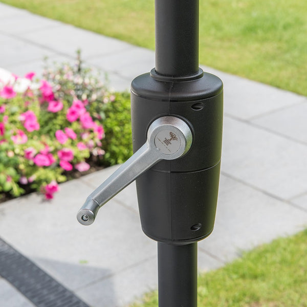 - Crank and Tilt System – With an easy action crank and tilt system, this parasol can conveniently be positioned as the sun moves throughout the day.