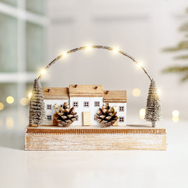 Add a cosy and festive touch to your Christmas decor with this charming Light-Up Village Scene. Featuring soft, warm white LED lights, this stunning village scene creates a captivating display that is sure to wow your guests.