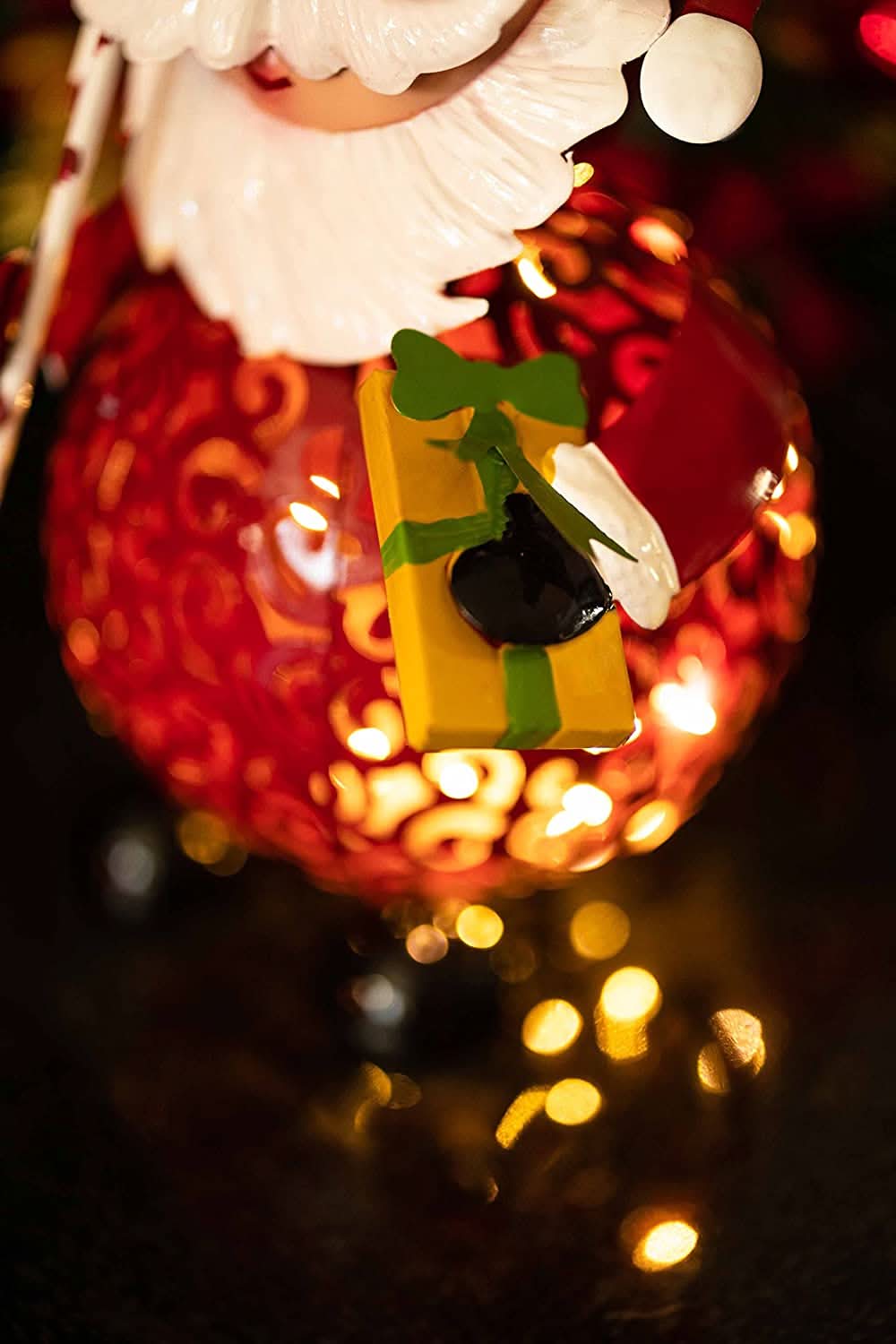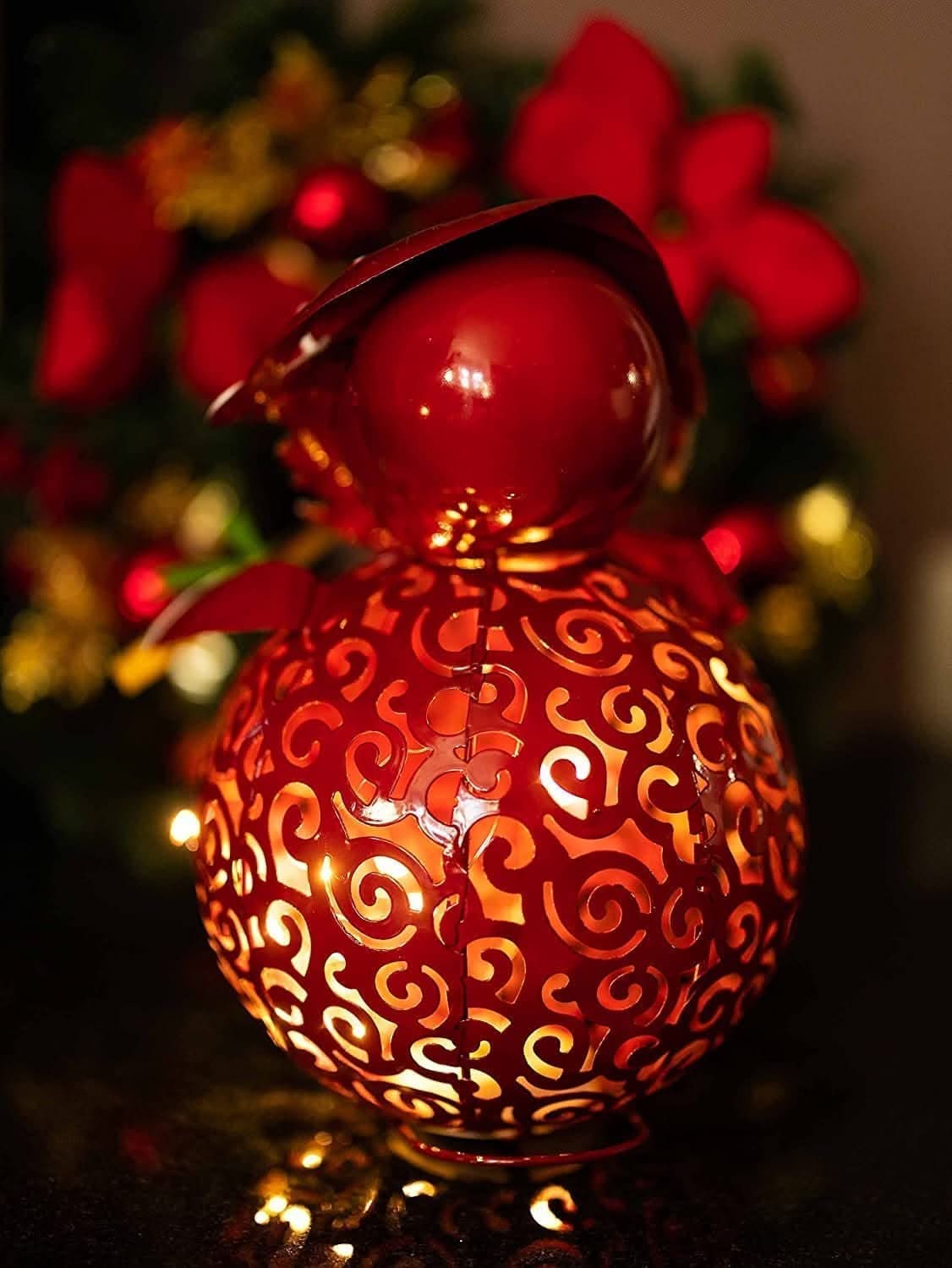 In festive colouring, and with the fun addition of 15 internal firefly string lights, this ornament will comfortably fit in with any style of household décor.