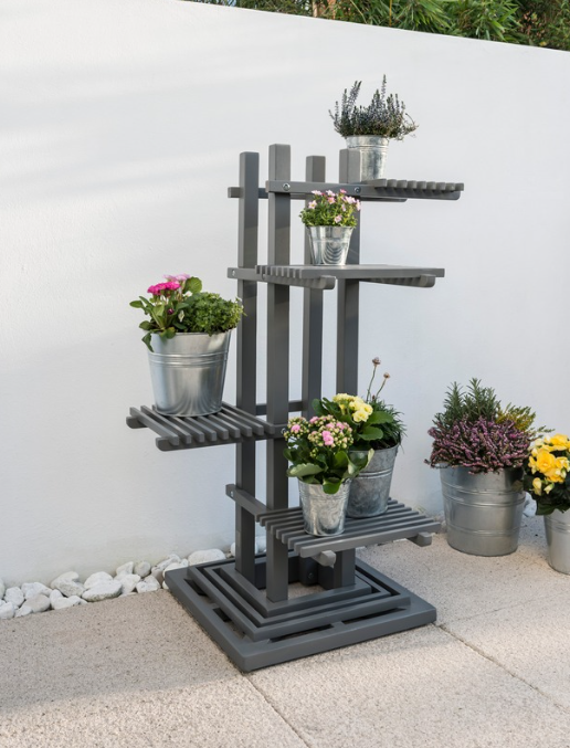 This plant stand is designed to showcase your plants elegantly, making it ideal for displaying herbs, flowers, or decorative pots. Its sturdy design ensures it can withstand outdoor conditions, while the grey finish adds a touch of sophistication to your garden decor.