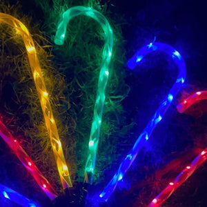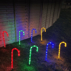 This 4pc set of Multi Coloured Candy Cane Stake Lights is sure to make an impact on your outdoor space, bringing some of the magic of Christmas directly to your door!