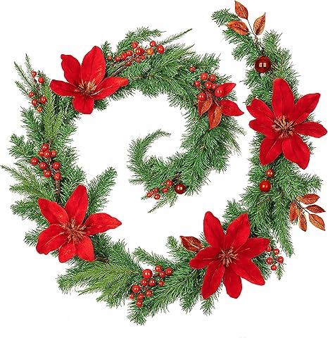 LED Christmas Garland with Luxury Red Magnolia