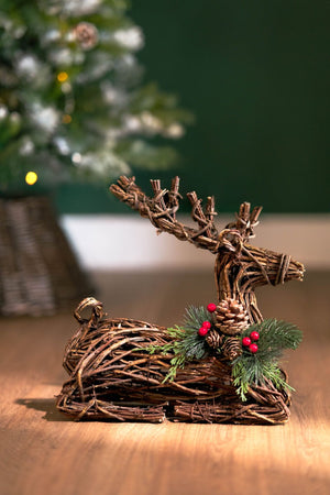 This reindeer is the perfect centerpiece for your holiday decor, whether displayed on a mantel, nestled beneath your Christmas tree, or standing proudly on a side table. Its striking design and attention to detail make it an eye-catching piece that effortlessly complements any holiday theme—from traditional to modern. The subtle rustic touches give it a cosy, vintage feel, making it a versatile addition to your home, regardless of your style.