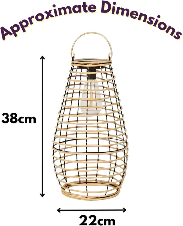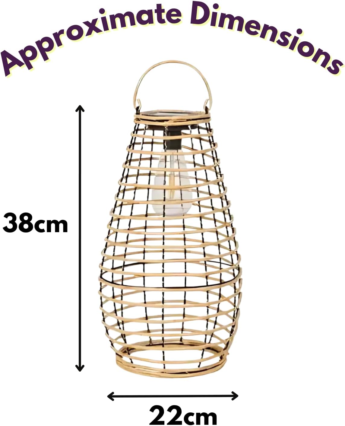 Freestanding or Hanging Design - Warm White LED’s is a on trend rattan style solar lantern which makes the perfect addition to any outdoor space. (5 Lumen). Dimension 38cm x 22cm.