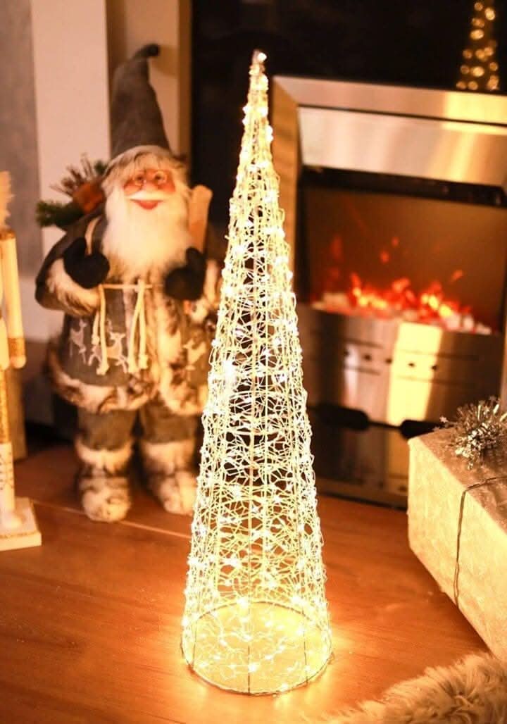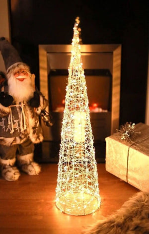 Our Xmas decorations are stunning light-up cone-shaped trees with modern style. It is the perfect way to bring that festive feel into your home with none of the mess or cleanup when January strikes. This xmas tree decorations are intricately clustered wire cone-shaped tree with LEDs makes for a fantastic addition to any room within the home.