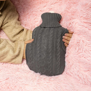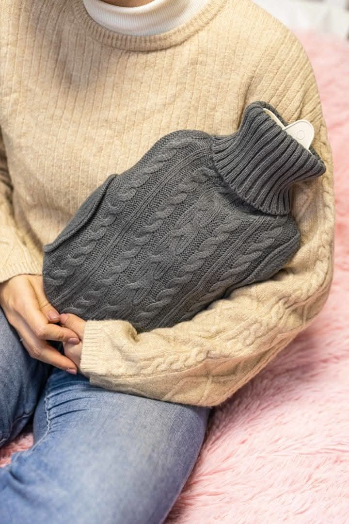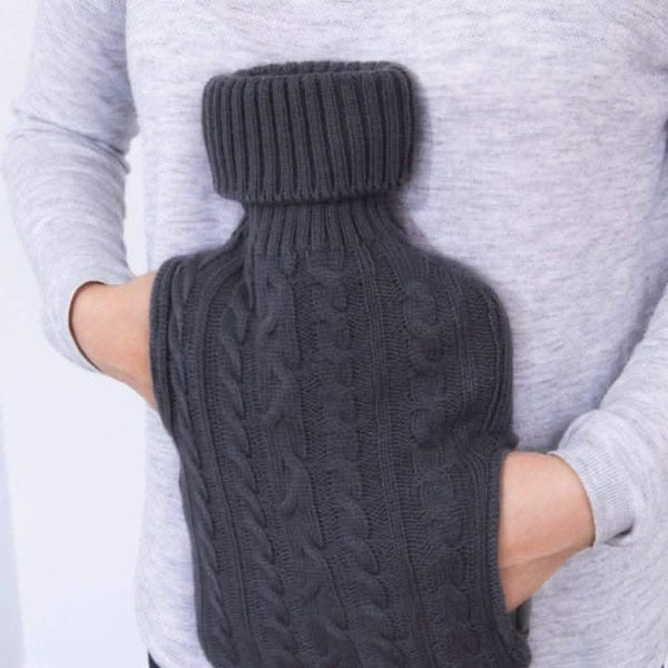 Premium Knitted Hot Water Bottle Cover Grey 2L