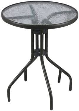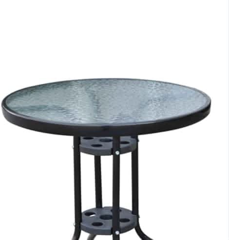 The traditional design features a textured glass top adding a subtle but elegant feature making the table non-slip on the top for holding your drinks. The metal frame of the table is designed with stableness in mind keeping it secure on your patio.