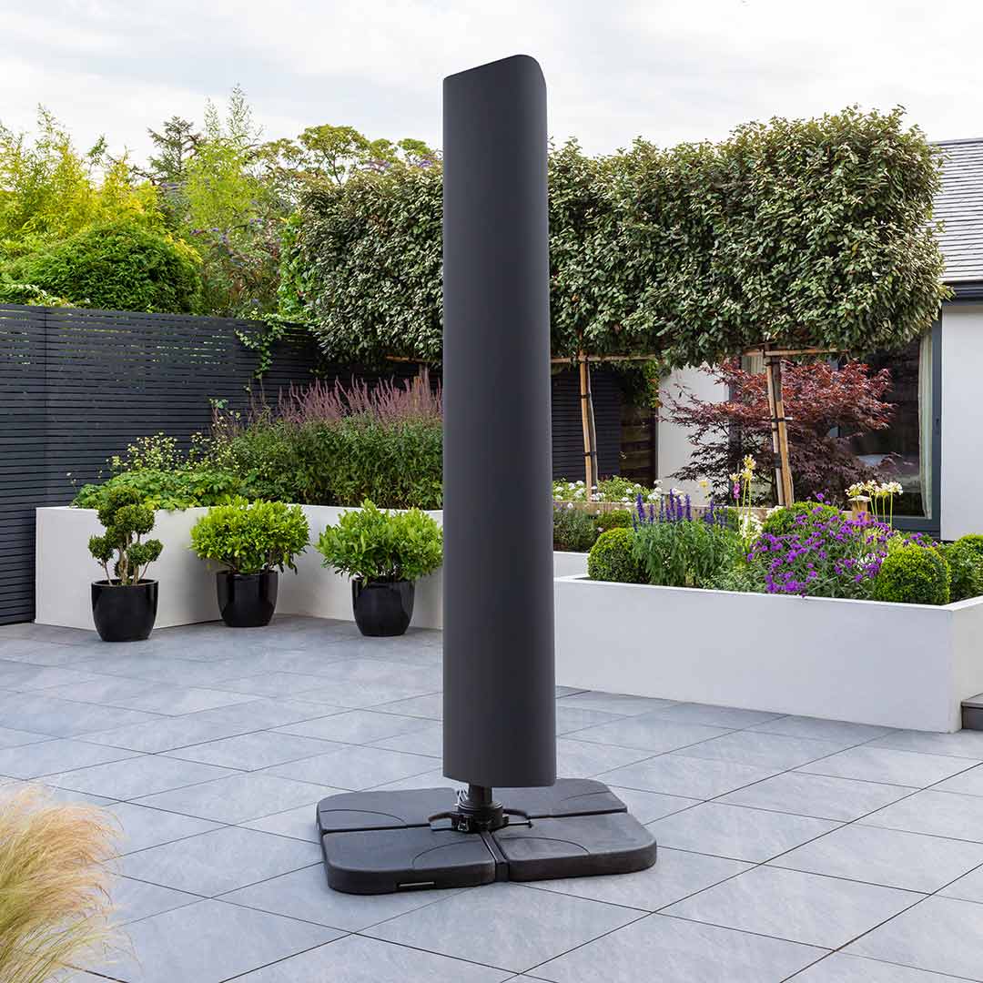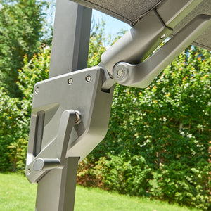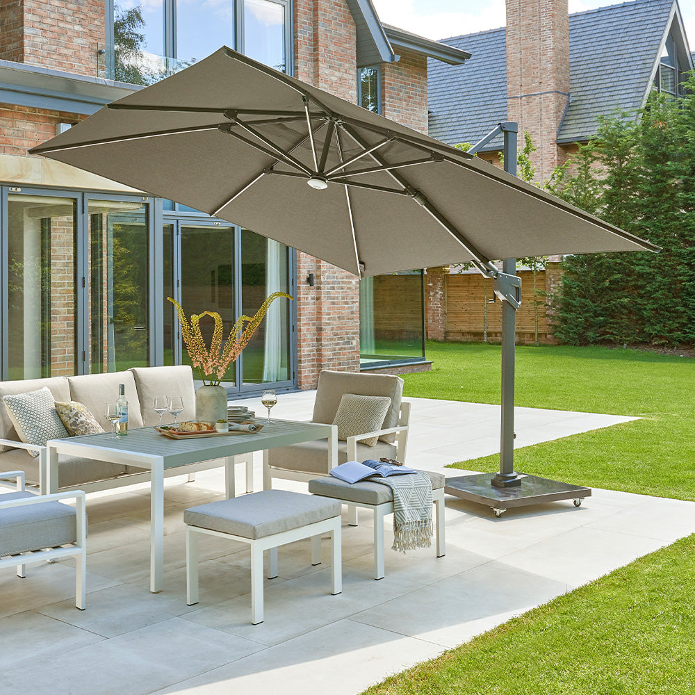 Luxury aluminium cantilever parasol, with easy action handle, tilt system, and full rotation. The Royce Ambassador comes with a superior Novasun™ fabric canopy. Made of aluminium and including the new larger pole, ribs and handle the Ambassador has modern lines and contemporary finishing.