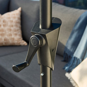 - An easy use crank handle for raising and lowering your parasol and a push button tilt arrangement allows you to move the canopy with ease to give you the protection you need throughout the day