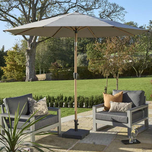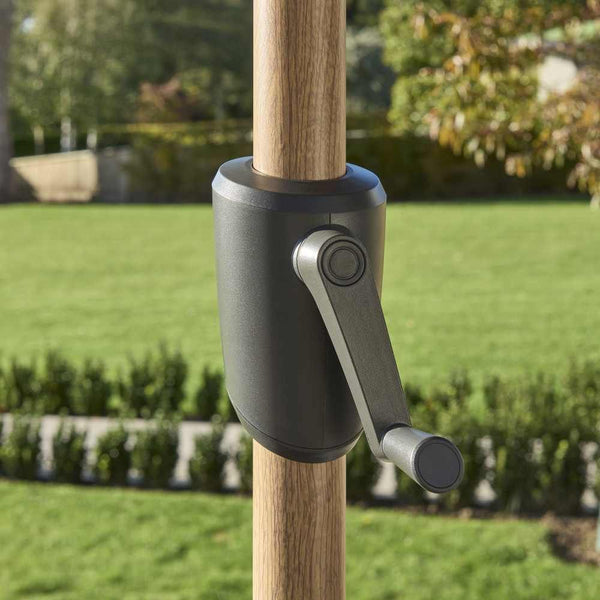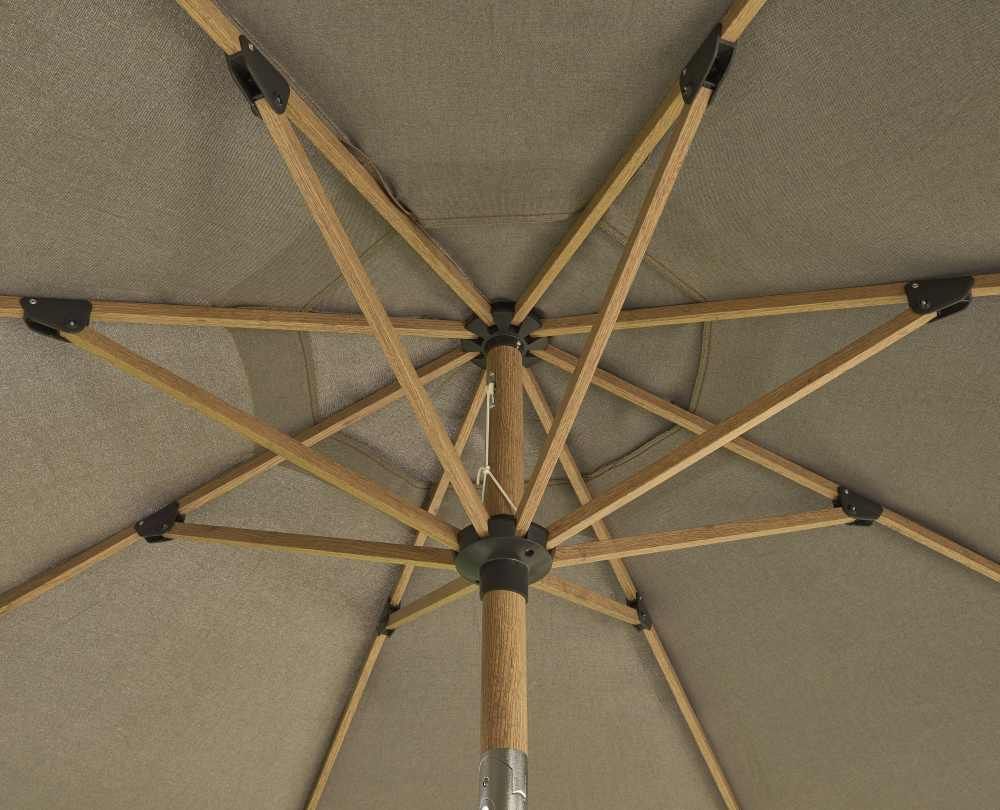 Royce Premium 3m Round Parasol LED - Wood Look Frame - Novasun™ SMOKE GREY Canopy & Cover