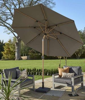 This Royce Premium Parasol bundle comes with a heat-transfer wood-look effect, a Novasun™ Material Canopy and a Night Cover.