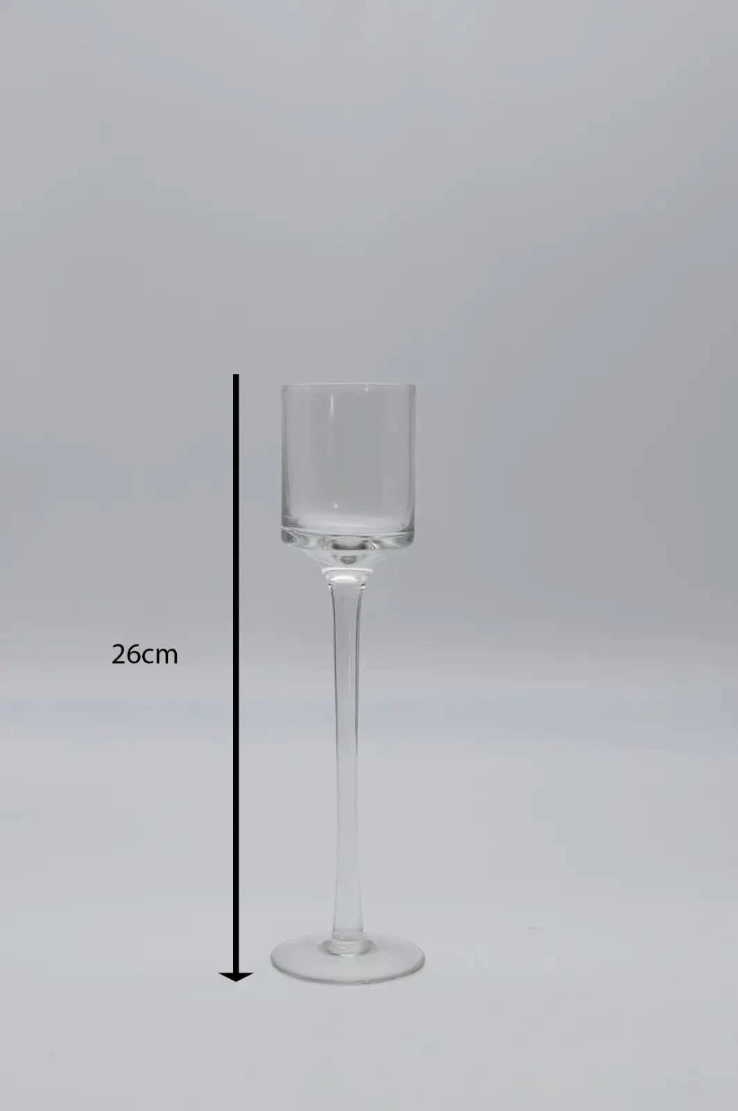 Our set of 3 glass candle holders are perfect to make a statement in any home. This is ideal to use with tealights, floating candles or votive candles. Create a mesmerising centrepiece for a special event such as a wedding, birthday or even for a dinner party. Make your dream living room or dining room a reality and place our candle holders in your home. Made from hard-wearing glass, ensuring to be long-lasting. Our glass candle holders measure at 20cm tall, 23.5cm tall and 26cm tall.