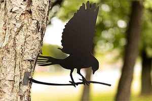This eye-catching black metal bird on branch can be applied to a variety of places, courtyards, gardens, woods, etc. Simply gently screw into a wooden post or tree and allow him to watch over your garden.