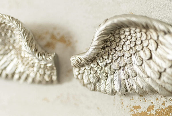 These stunning pair of feather wings with small feathers for walls are made highly detailed and finished in a vintage style. This unique vintage fairy wings silver shabby chic style angel ornament will bring charm and delight to your home